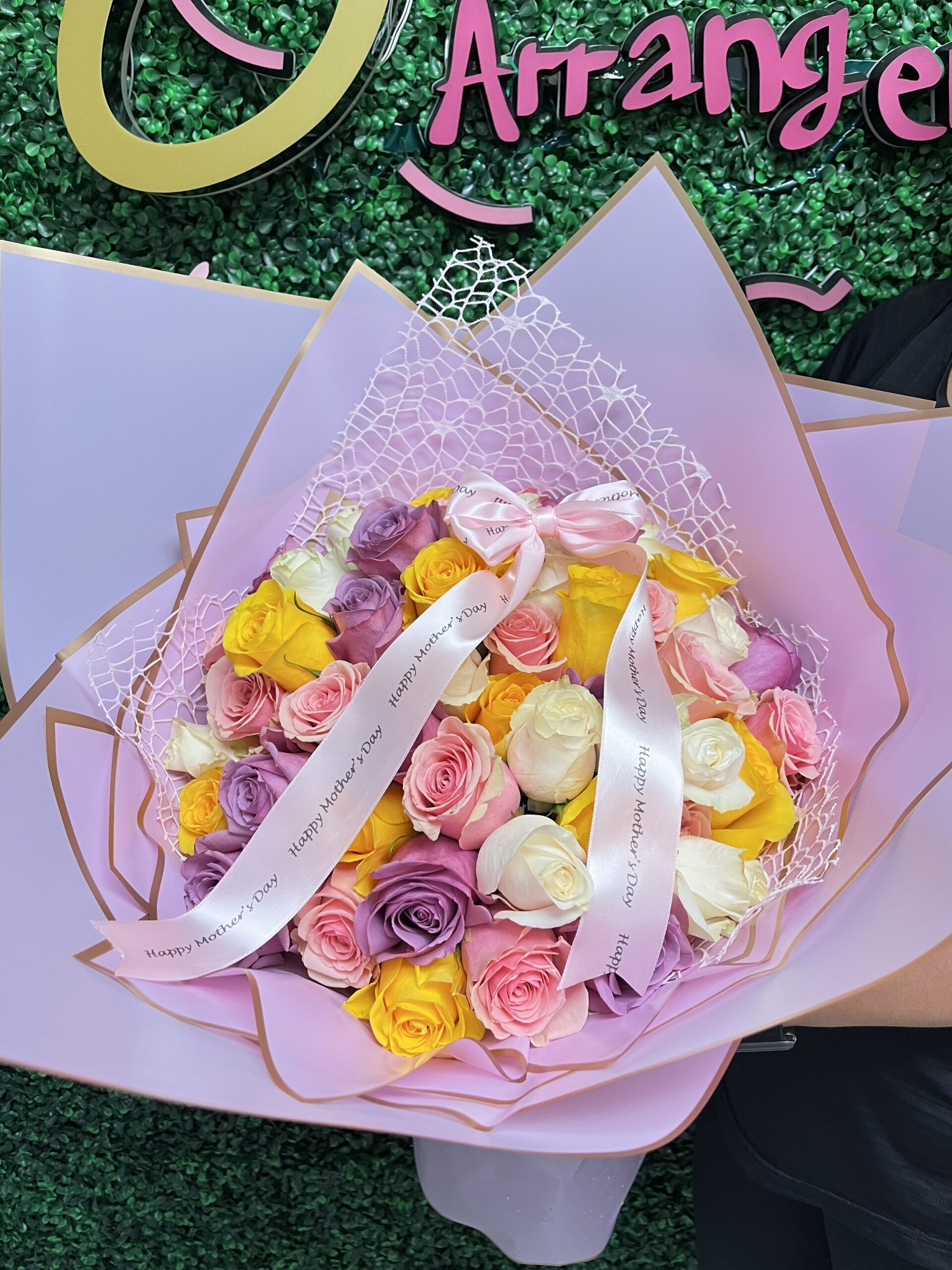 wrapped bouquet with mix roses, butterfly